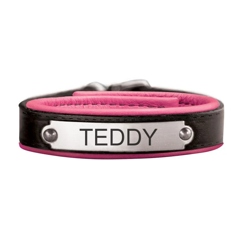 The Perri's Personalized Black Leather Bracelet is stylish and classic all at once. This Amish-made, soft padded leather bracelet with small roller buckles has durable stainless hardware and a chrome plate that can be personalized with up to 15 characters.